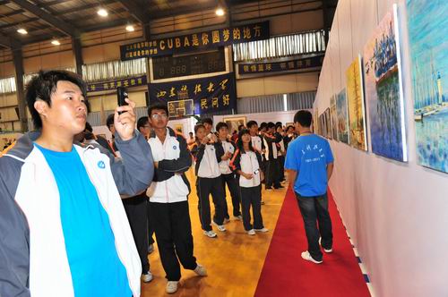 学生在参观画展