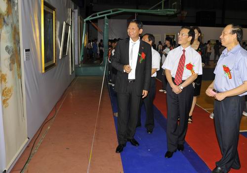 剪彩仪式后,王春秋、王同孝在曹俊及夫人陪同下参观了画展。